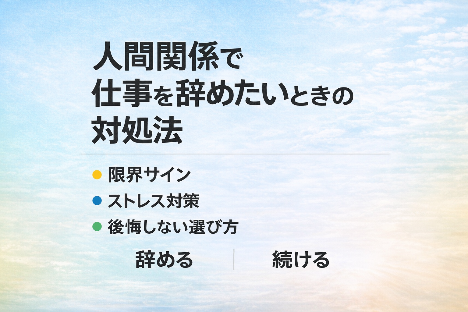 この記事では、人間関係で仕事を辞めたいと感じたときの対処法と、