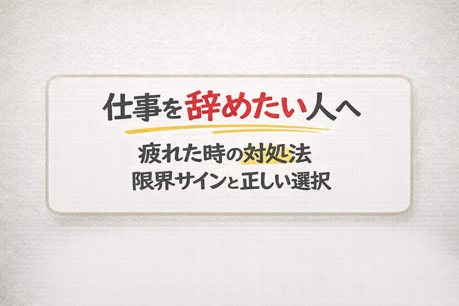 この記事では、仕事に疲れて「辞めたい」と感じたときの対処法と、